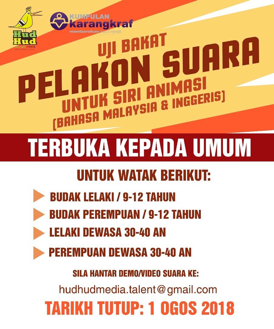 Fazleena Hishamuddin On Twitter Ujibakat Pelakon Suara Untuk Siri Animasi Terbuka Kepada Semua Hantarkan Demo Suara Anda Tarikh Tutup 1 Ogos Ini Go Https T Co Eufkittsqv